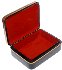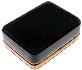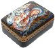 The box is constructed out of paper-mache. Black lacquer covers the exterior and red lacquer covers the interior of the box. The box has a hinge from the left of the scene, and rests flat. The work is signed with the artist's name,and Fedoskino .