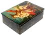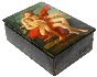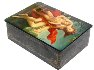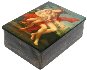 This charming box has been painted by talented Fedoskino artist Semeonova Svetlana. It depicts a cupid sitting on legs of Venus and ready to send an arrow from a bow.
