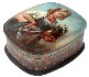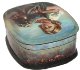 The box is constructed out of paper-mache. The box has a hinge from the left of the composition, and rests on a flat bottom. The work is signed by O. Zayakina.