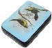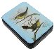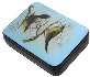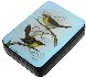 Description: Artist Mashkova from the village of Fedoskino is fond of birds, and has created a series of works painted on this theme. Here she has depicted a couple of Motley Crickets sitting on the branches of a tree. The noble scarlet and gray feathering of the depicted bird contrast beautifully with the delicate light blue background. Aluminum powder shines in the middle of the scene to focus the viewer's attention on the depicted birds!