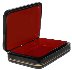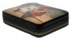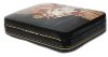 The box is constructed from paper-mache. Black lacquer is used to paint the exterior of the box while red lacquer completes the interior of the work. The scene is framed with a gold line while the box's sides are decorated with two parallel gold lines. The lid is hinged from the top of the scene, and the box rests on a flat bottom. The work is signed with the artist's name, Fedoskino and the year of 2013.