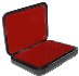 The box is constructed from paper-mache. Black lacquer is used to paint the exterior of the box while red lacquer completes the interior of the work. A hinge is fastened to the left of the composition, and the box rests on a flat bottom. The work is not signed.