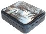 The box exterior's sides imitates the coloring of blue marble (tiny black veins are scattered against the light blue background). The interior is traditionally covered with red lacquer.