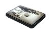 The box's sides are decorated with silver scan patterns. Scans are individual silver punch-outs that are applied to the box surface.