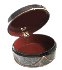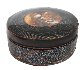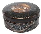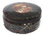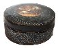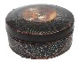 The box is made of papier-mache. Black lacquer is used to paint the exterior of the piece while brown lacquer completes the interior of the box. The lid is hinged from the top of the scene, and the box rests on four little legs. The work is signed with the artist's name and Fedoskino.