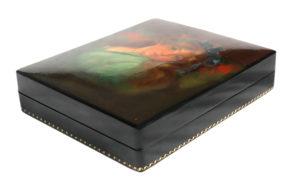 Description: Sergey Nasirov from the village of Fedoskino has painted this traditional for this village subject.