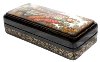 The box has a hinge to the left of the composition and rests on a flat bottom. The artist wrote Fedoskino, 2019, and the artist name below the composition.