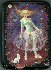 The work is called "Circus", and shows a young girl with a cap on her head , training a white kitten. She wears masquerade cloth.
