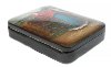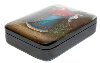 A hinge is fastened to the left of the composition. The box rests on a flat bottom. And it is signed with Fedoskino, 2017 and the name of the artist.