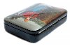 The box is constructed from paper-mache. Red lacquer covers the interior of the box. The exterior of the box is black.