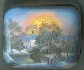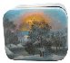 This small casket was painted by Sergey Parmeonov of Fedoskino. All five sides of it features the clarity and beauty of a winter landscape.,br> Every scene of each side depicts a frozen river and the surrounding landscape filled with trees and snowdrifts.