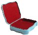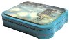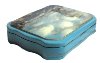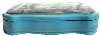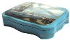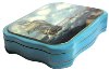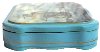 The box's exterior is painted in light blue colour. The composition is framed with a gold line and two parallel lines are decorated the box's sides.
