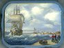 The ship equipment - all cables and ropes are drawn very thinly! Same as spray from the tops of the waves, whipped by a strong wind. Details are amazing!