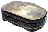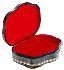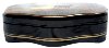 The box is constructed from paper-mache. Black lacquer covers the exterior and red lacquer covers the interior of the box.