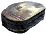 The scene is painted in brown, gray and green tones. Two pieces of mother-of-pearl can be found in the sky and in the waters of river.