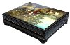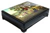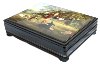 The painting is framed with a line painted in gold.The box's sides are decorated with two parallel gold lines.