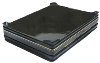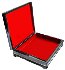 The box is constructed from paper-mache. Black lacquer is used to paint the exterior of the box while red lacquer completes the interior of the work. The lid is hinged from the top of the composition, and the box rests on four legs.