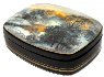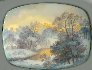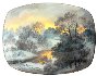 Here the artist has masterfully reflected beauty of Russian countryside in winter. A flash of sunset colors on the sky is achieved with the help of a sparkling gold metal foil. Painterly skill creates a dramatic interplay of light and shadow within the scene.