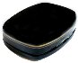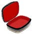 The box is constructed from paper-mache. Black lacquer is used to paint the exterior of the work while red lacquer completes its interior. The lid is hinged from the top of the scene, and the box rests flat. The work is signed with the artist's name.