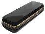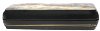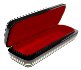 The box is constructed from paper-mache. Black lacquer is used to paint the exterior of the piece while red lacquer completes the interior of the box. A hinge is fastened to the top of the composition, and the box rests flat. The work is signed and dated 2016 at the bottom of the composition.