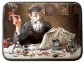 Here the artist has chosen to paint the watch master reading the newspaper. His face reflects his emotions regarding the article he reads. Various instruments for repairing watches and clocks are scattered on the table, and each of them is painted with a lot of diminutive details.