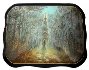 This work is called "Road to Church", and shows a Russian monk moving to a small wooden church built in the depths of the forest. In Russia a monk who lives in solitude, and can heal people and even predict forthcoming events is called starets that can be translated into English like "an old man" or wise man.
