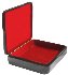 The box is constructed from paper-mache. Black lacquer is used to complete the exterior of the piece while red lacquer completes the interior of the box. The lid is hinged from the top of the composition and the box rests flat. The work is signed, titled and dated (2013) by the artist.