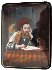 Description: This portrait of a Jew reading the Talmud at the table was painted by a talented Fedoskino artist Yevgeniy Dokuchaev. An established artist, Dokuchaev has received several awards and distinctions, and is a very well-known portrait painter. This portrait is masterfully executed :tones, shades and light are perfect.
