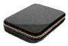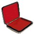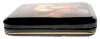 The scene is framed with a gold line, and the sides of the box are decorated with two parallel gold lines. The box's exterior is covered with black lacquer. The interior is traditionally covered with red lacquer.