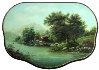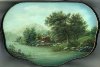 Description: This elegant scene is a beautiful creation of Gennadiy Petrov. It shows a picturesque view of the lake surrounded with mountains. On a front we can see a small house on a shore surrounded by trees.