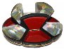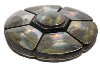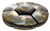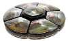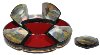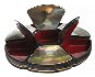 This originally shaped box with several compartments was painted by Parmeonov Sergey. The set includes seven compartments that rest on the round shaped tray. Six of the seven lids are openning up as they are hinged while the central lid can be easily moved away from the tray. The set looks like a daisy and each of its petals is a compartment!