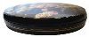 The lid is hinged from the top of the painting, and the box rests flat. The work is not signed.