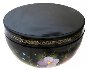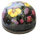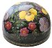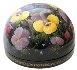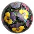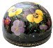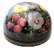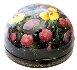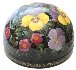 This composition is painted over the half-sphere shaped box and shows flower bed of yellow-cups and other beautiful plants. The scene is painted in bright oils over the black background in the realistic style with photo quality accuracy. An enchanting work!