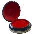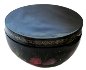 The box is constructed from paper-mache. Black lacquer covers the exterior and red lacquer covers the interior of the box. Lid is fastened to the base with a hinge. The box rests on a flat base. The work is signed with the name of the artist and dated 2014.