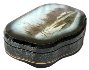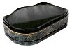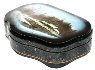 The scene is framed with a gold line. Sides of the box are imitating black-and-blue stone with addition of thin gold lines, and decorated with two parallel gold lines.