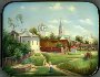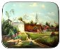 Description: This box painted by Julia Golubyonkova is an interpretation of the famous canvas-on-oil painting called "The Small Moscow Yard". Painted in 1878 by Vasily Polenov, this masterpiece is exhibited in the Moscow Tretyakov Gallery.