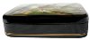 The box is constructed out of paper-mache. Black lacquer covers the exterior and red lacquer covers the interior of the box. The lid is hinged from the top of the scene, and the box rests on a flat bottom. The work is signed with the artist's name, Fedoskino, and the title.