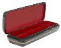 The box is made out of paper-mache. Black lacquer is used to paint the exterior of the box, while red lacquer completes its interior.