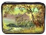 Description: This peaceful landscape is a creation of the talented Fedoskino artist Dmitriy Tipyakov. It is called "Small Willow", and shows a panorama of a river somewhere in Russian countryside throught the willow tree, located on it's bank.