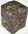 To paint this work Maslov has used violet, crimson, blue and brown tones of oils. In some areas the oils are mixed with gold powder that shines brightly through them. Gold and silver paints are used to enhance various details. The box's bottom part is outlined with gold. Its exterior bottom is covered with dark crimson lacquer mixed with gold powder. Dark crimson lacquer mixed with gold powder also covers the box's interior. On the lid's interior and the interior of the box's body Maslov continues to paint oak leaves. A small square piece of mother-of-pearl is glued to the lid's interior; the artist has again drawn on it oak leaves, and also written his name, the title and the year of 2007. The box is made out of paper-mache. The lid is hinged, and the box rests on a four feet.