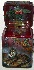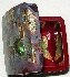 |                                   |  |  Vladislav Maslov from Fedoskino has painted this gorgeous box. It is a fine specimen of an oil based painting worthy to be exhibited in a museum. It is an artist's original work as well, which was taken straight from the creative depths of his head, to paper, and then finally to this box.The work is called "Forest Tales". The whole surface of its exterior (except the exterior bottom) is covered with impeccable miniature painting. On the box's front side Maslov has drawn Alexander Pushkin's cat from his introductory poem to "Ruslan and Ludmila". This cat is Russia's favorite literary animal. It acts as the muse and teller of Pushkin's writings that have captivated his audience since the early 1800's.  The cat is often called 'clever', and is described as always being around an oak tree by the sea. Around the oak a golden chain is wound, along which the cat walks around day and night. When it goes left it tells a story and upon going right it sings a song. On the rest part of the box's exterior Maslov continues to describe what is taking place in and around the oak tree from the cat's point of view. The trunk of the big old oak tree is painted on the box's right side. A small boy peeps out from the big hollow of the oak. The artist goes on to paint the branches of the oak on the box's front side, from the right of the cat. There is a mermaid sitting on the branches, and playing the lute. In the far background, a little above the cat's head you can see Ruslan sitting on horseback.  The crown of the oak tree is drawn on the box's lid. Here the artist has painted oak leaves and beetles hovering over them. One of the beetles is crafted three-dimensionally as well as some of the leaves painted on the bulging pieces of mother-of-pearl (these pieces of mother-of-pearl repeat the shape of leaves). The oak leaves painted over the bulging pieces of mother-of-pearl can be also found on the box's sides; the artist has created an illusion that these leaves are falling from the oak's crown. A small pearl bead is glued to almost each oak leaf to create an illusion of dew drops shining on these leaves. On the box's left side Maslov has drawn Baba-Yaga walking through the forest and gathering healing herbs. She is accompanied by the wolf, the white horse, the bat and the forest birds. On the box's rear side the artist has again painted Baby-Yaga committing a magic ritual with the help of a sword.