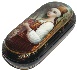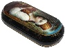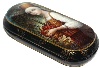 Description: Yelena Aldoshkina is the famous Fedoskino artist who painted this beautiful portrait of a Russian peasant woman. She is dressed in the traditional Russian costume and holds the basket filled with bright red ashberries. Gold paint creates brilliance of the woman's costume, the basket, the trees and some of the plants. The composition and the base of the box are encompassed with a wide gold band. The box's sides are beautifully decorated with branches of a mountain ash painted in gold and accented with oil paints.