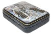 Rich gold line frames the composition.The box's sides imitates the color of blue marble; the bottom is black, while the interior of the box is traditionally red.