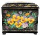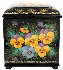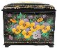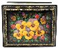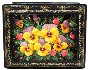 Description: This very detailed five-sided casket with flower scenes was painted by establshed Fedoskino artist, Igor Evmenenko. Evmenenko has been working as a teacher of Art at the Fedoskino Art school for several years.