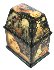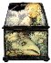 On the lid of a chest we can see a Fire-Bird. On one of the upper parts we can see a little hump-backed horse. The lower level of the scenes shows the fishes and underwater world. People's faces are under water and the fishes are swiming in front of them or near by...