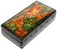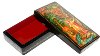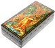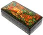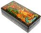 |                     |  |  This box was painted by Veronika Vorontsova from the village of Kholui. It shows a scene from the well-known fairy-tale "Princess Frog". Ivan stands near the small pond and doesn't know what to do. His arrow fell near the frog, and that is why it is destined to be his wife. His father ordered that he and his brothers were to each shoot a golden arrow, and where it landed, they were to take a bride. Our prince, the youngest, has had the misfortune of firing into a bog, and the only creature near is a large frog, who waits patiently with the arrow in its mouth. Luckily, the frog was really an enchanted princess, and it is a zest of the story.The composition is painted in bright colors. The palette is based on beautiful combinations of red, yellow, green and blue tones. Gold paint highlights the landscape, creating dramatic swirls in the leaves and needles on the trees, and it also enhances Ivan's costume, the Frog's crown and the arrow in its mouth. Besides the main characters of this story, Ivan Tsarevich and the Frog, the artist also depicts different animals: a bear, squirrels and different birds, making the composition's structure more complex.