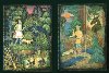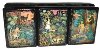 Golden dot ornamentation frames all compositions on all the lids. These lids has hinges from a top of the paintings and a chest rests on four legs. It is signed with the artist's name, village of Kholui and title.