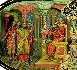 Description: Mstera' s Valentin Tikhomirov is the talent behind this work. The artist consistently paints his compositions and the surrounding decoration on an equal plane. Here he has chosen to depict a fragment from the fairy-tale "The Tale of Tsar Saltan and his son Prince Gvidon". In the middle of the composition Tsar Saltan and his wife sit on their thrones, and receive foreign guests.