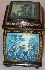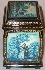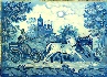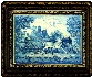The work is painted in Tikhomirova's unique style, using a palette filled with various shades of blue. Each scene is outlined with gold, and framed with nice gold designs.