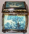 Description: This box painted by the talented Mstera artist Inna Tikhomirova is called “Rendezvous”. Each of the box's sides including the lid features a romantic scene. On the lid a noble man rides in the carriage hastening to the ball to have a date with his lady-love; while on the sides we can see a lady leaning against the tree in the park, and intending to read a love letter (the front side); the rendezvous of a gentleman and a lady in the park (the right side); a lady riding her steed towards the secluded nook of the park where her suitor is waiting for her (the left side); a lady who enjoys riding the swing and the gentleman who entertains her (the rear side).